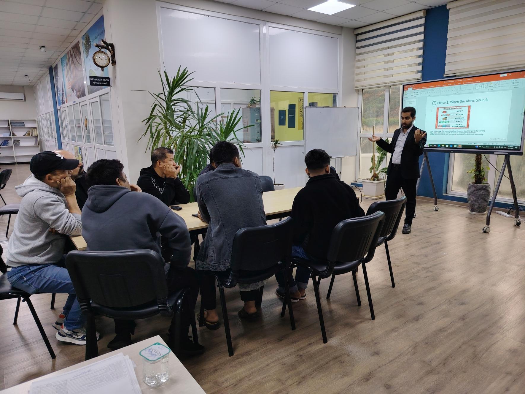 بەڕێوەچوونی سیمینارێکی بەڕێوەبەرێتی تەندروستی و سەلامەتی لە کتێبخانە بە ناونیشانی ڕاهێنانی سیناریۆیی ئاگر کەوتنەوە، کە بە ئامانجی ڕاهێنان بە سەرجەم تیمی فایەر مارشاڵ کە پێکهاتووین لە ٨ هەشت ئەندام کە ئەرکەکانمان دابەشکردووە بۆ ئەوەی لەکاتی جێبەجێکردنی فایەر دڕێل هەر ئەندامێک بەرپرسیاریەتی خۆیی بزانێت ، بە شێوەیەکی گشتی باس لە هەنگاوەکانی پڕۆسەکە کرا بۆ ئەوەی لەکاتی دروستبوونی حاڵەتە مەترسیدارەکاندا بە شێوەیەکی هێمنانە وە سەلامەت سەرجەم فێرخوازان و فەرمانبەرانمان بپارێزین.